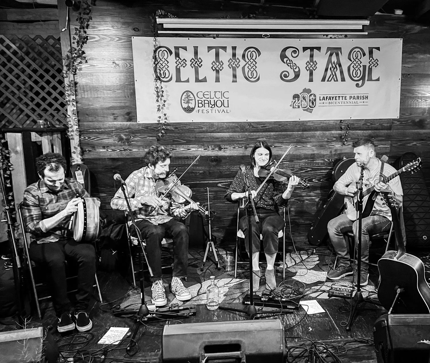 The Here & Now is an exciting 4 piece band born out of Austin Texas and Sunset, Louisiana. The band is made up of Chris Buckley (fiddle), Niamh Fahy (fiddle, vocals), Rob Forkner (Bodhrán) and Tony Daveron (bouzouki/ guitar / vocals). All accomplished musicians in their own right, together they create a rich and captivating sound full of energy that presents Irish traditional music in a contemporary context. Drawing from each of their backgrounds in Irish music, with a geography that spans the United States and Ireland, The Here & Now keep tradition at the heart of their music while widening the breadth of their repertoire with original compositions.